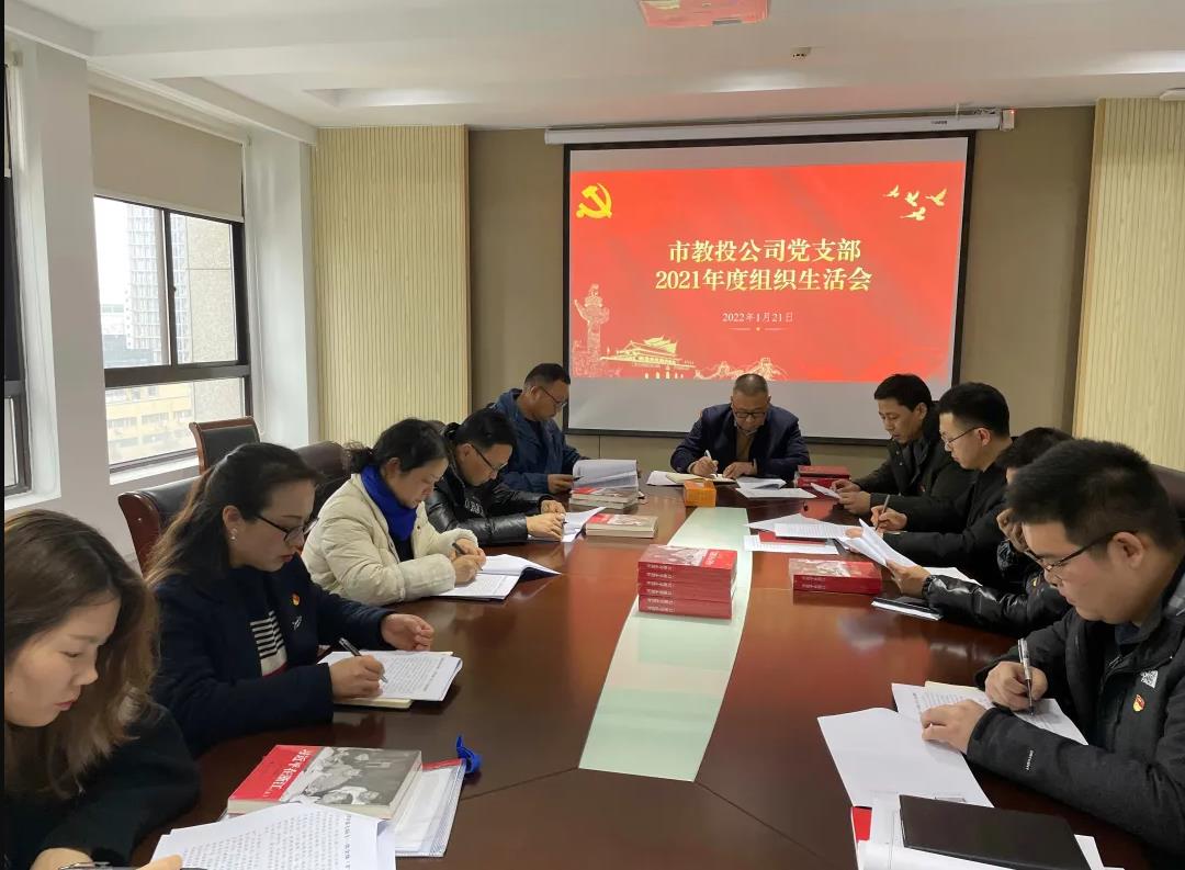 1月21日,市教投公司黨支部召開2021年度組織生活會,開展黨員民主評議和星級評定。公司黨支部書記、董事長兼總經理呂潮陽參加會議,與支部委員、全體黨員一起學習討論、交心談心。